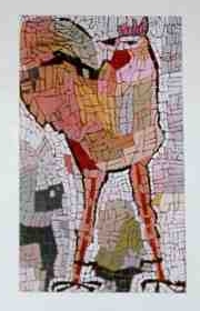 Bloom experimented with many styles, from beach scenes whose broad patches of color suggest an inspiration from Diebenkorn, to his favorite animal subject, roosters, ranging in style from post-impressionism suggestive of van Gogh to abstraction in the manner of de Kooning. In fact, his Master's thesis was a series of roosters painted in the manner of ten impressionist and post-impressionist masters. |
